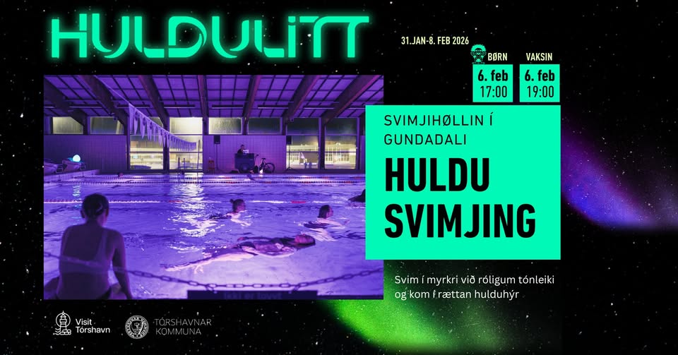 As part of Huldulitt, we invite you to a unique swimming experience in the dark. Enjoy soothing tunes and lights and immerse yourself in a captivating, mystical atmosphere.