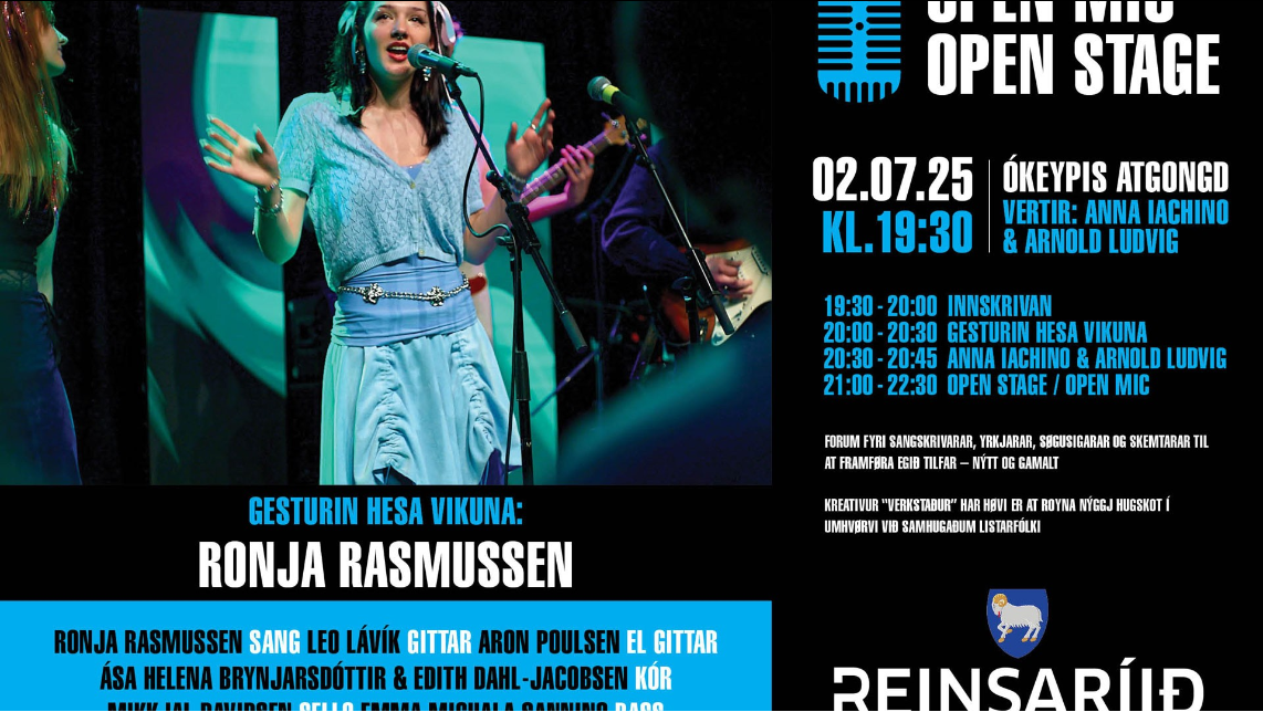 Open Mic/Open Stage er ætlað eitt nú sangskrivarum, yrkjarum, søgusigarum og skemtarum, ið ynskja at framføra egið tilfar, nýtt eins væl og gamalt. Tiltakið er ein kreativur verkstaður, har høvi er at royna nýggj hugskot í einum umhvørvi saman við samhugaðum listafólki.
