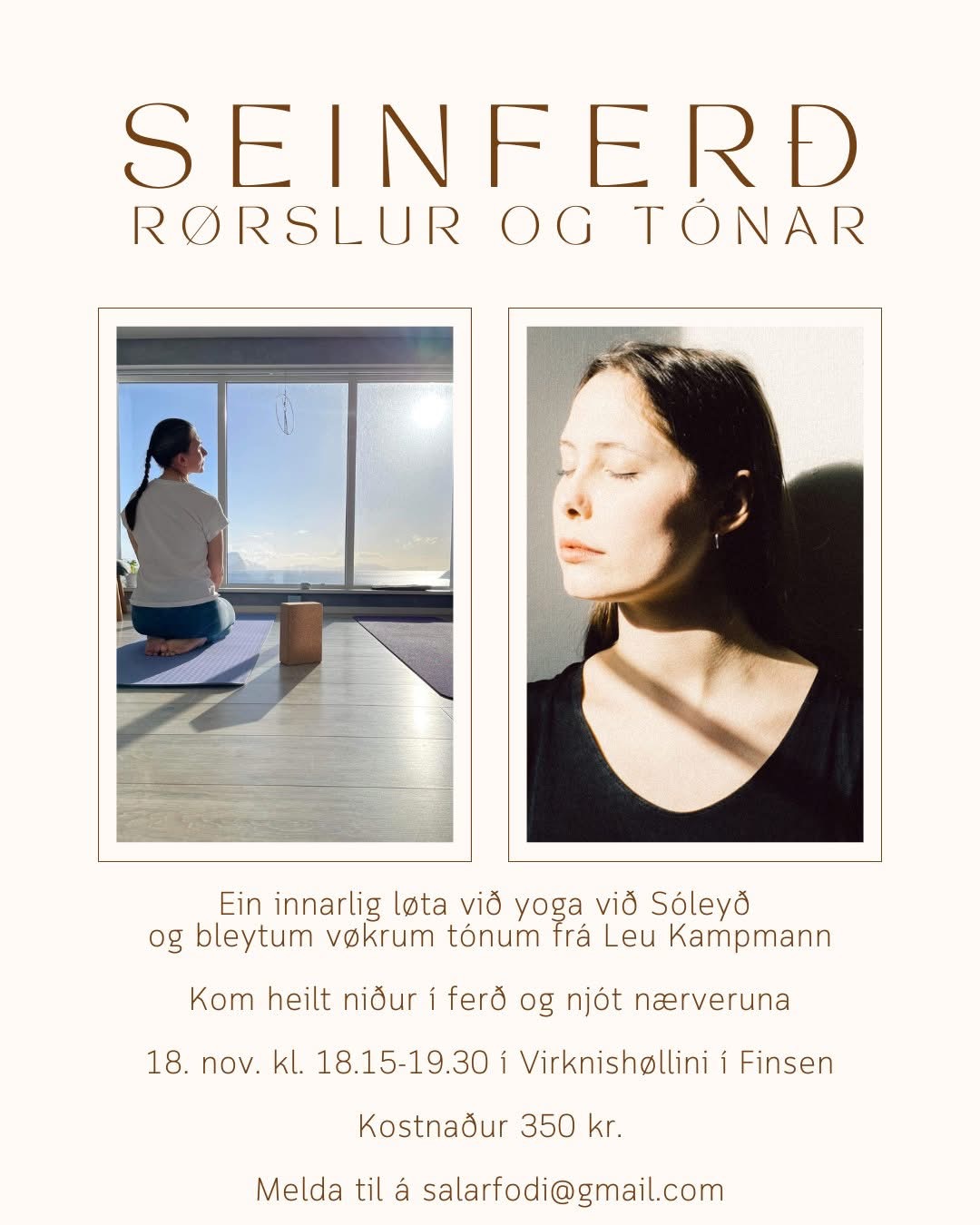 Innarliga løtan verður týskvøldið 18. november kl. 18.15-19.30 í Virknishøllini í Finsen 🧘‍♀️🎶