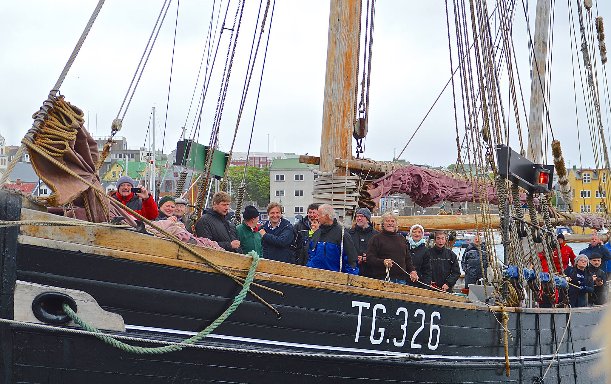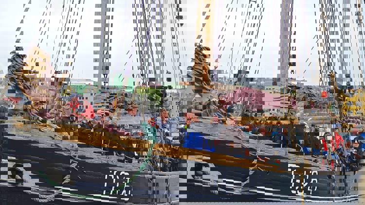 Manningin á Westward Ho hjálpir børnunum at hála fokkuna upp og niður, leggja um klampa og seta fast og at gera fallið upp.