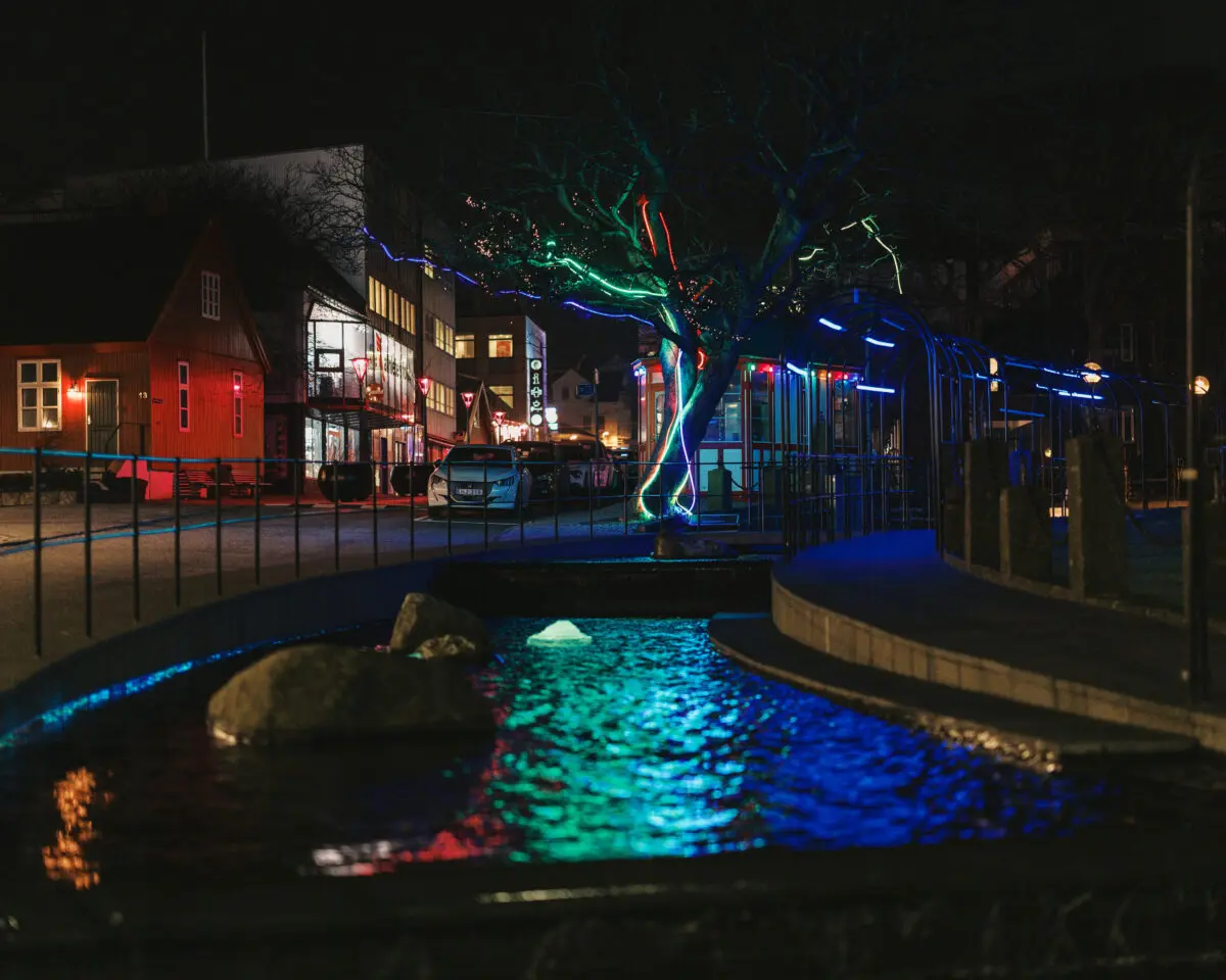 The city center in Tórshavn will also be decorated with light installations, including a hidden tunnel on Vaglið and a special wall decoration in Steinatún featuring creatures by William Heinesen. ‘William Heinesen is also known for creating and drawing trolls and other beings inspired by the hidden world, and the statue Tarira in Viðarlundin is an example of that — and now these beings will come to life through an animated wall decoration,’ Tordis explains.